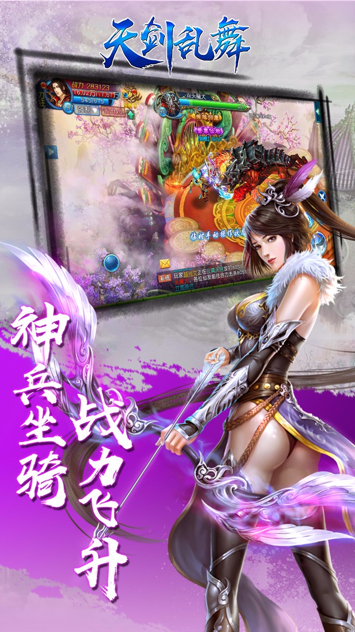 《天剑乱舞》游戏中不仅有双头魔犬,法器首领更多原创妖魔boss,三界之外的故事,语音挂机统统都有,谈情说爱轻松;神兵法宝光武特效呈现,还有特异的骑宠让你享受,当然还有上仙榜排名,制霸幻境的称号,实力的象征值得拥有!