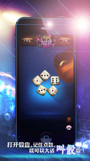 但是由于这个游戏要使用到大量的骰子和骰盅,不能随时随地玩,不过热衷于这款游戏的玩家们不要担心,有了“大话骰”,就能立刻把你的IPhone变成骰盅,和朋友玩游戏、猜点数了。
