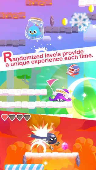《小黄鸡跳一跳》是一款萌系画风的宠物冒险游戏,这个世界的鸡需要一个英雄于是我们的小鸡闪亮登场,黄色的身体可以去其他的乌黑之众做出区别,方便房间操作躲避致命的攻击,你的任务是凭借小鸡的跳跃能力坚持冒险到最后。