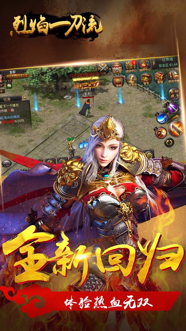 烈焰一刀流BTios版是一款大型多人在线的MMOARPG传奇手游,游戏拥有精致恢弘的场景,写实的画面风格,搭配人性化的操作和战斗界面,在庞大的沙巴克世界中冒险战斗,杀怪夺宝,围剿世界BOSS,感受震撼传奇巨作!