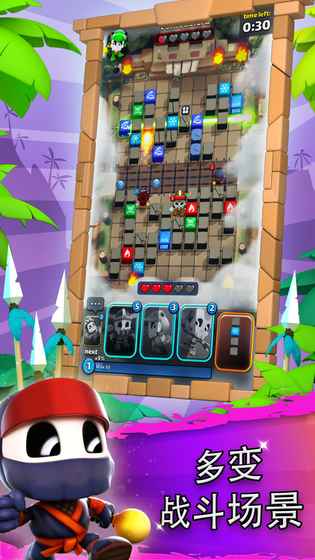 在多变战斗场景中享受在线实时对决带来的快感,调整你的卡组打败嘲讽你的对手,开启宝箱赢取丰厚奖励,尽可能合成高级物品升级你的卡组。