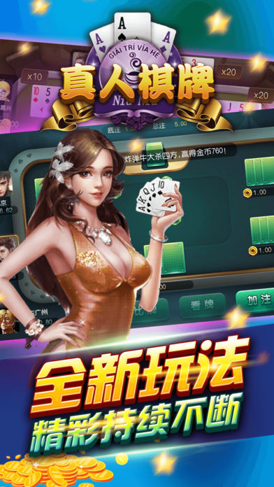 考验玩家胆略和智慧的诈金花,比牌规则独特,游戏画面精致!